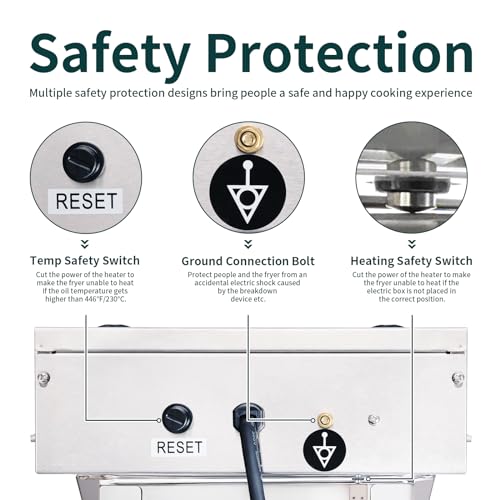 HIGH QUALITY: The commercial deep fryer electric is made of 304 stainless steel, sturdy and durable. The fryer has easy-to-carry handles on both sides, making transportation easier than ever, and all the edges are polished so they won’t scratch your hands when you’re using it.